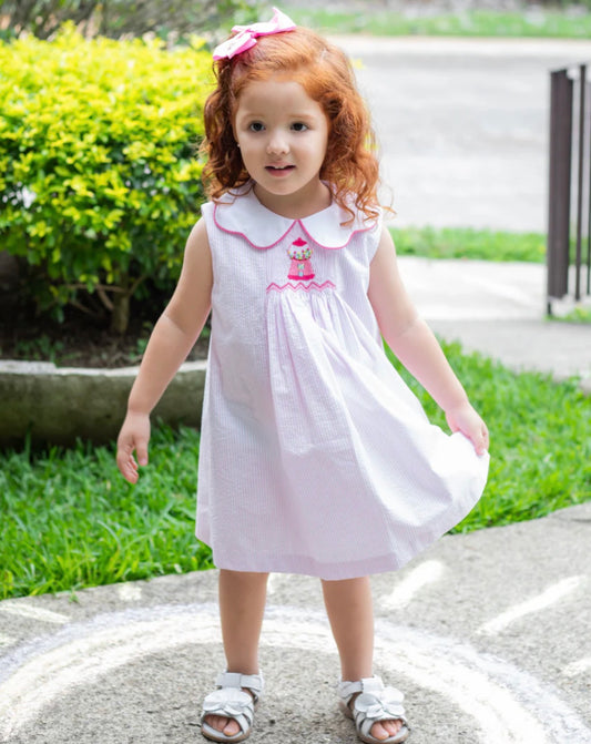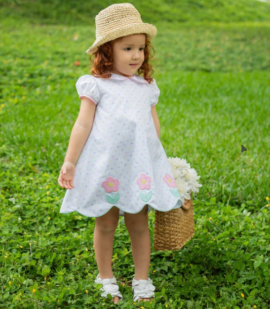 Bianca A Line Dress W/ Scalloped Border Ribbon