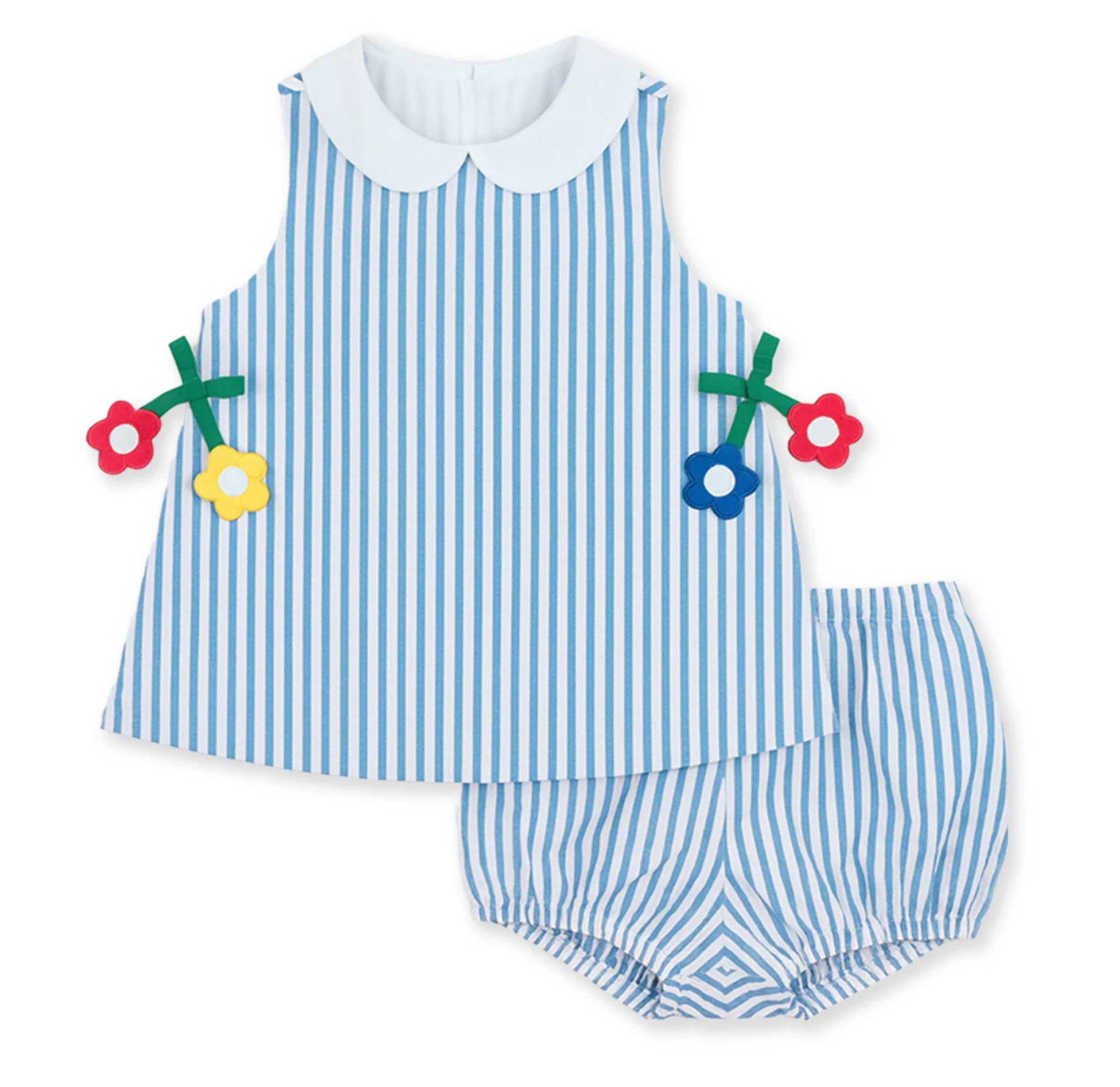 Seersucker Dress & Bloomer With Flowers