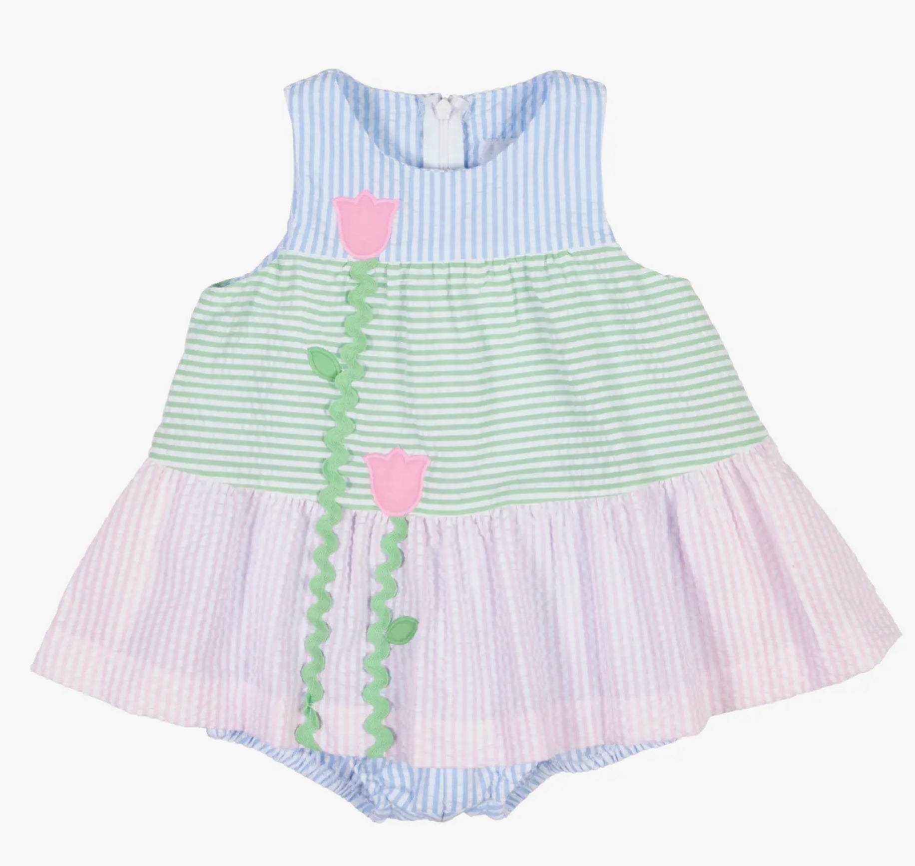 Seersucker Romper With Tulips